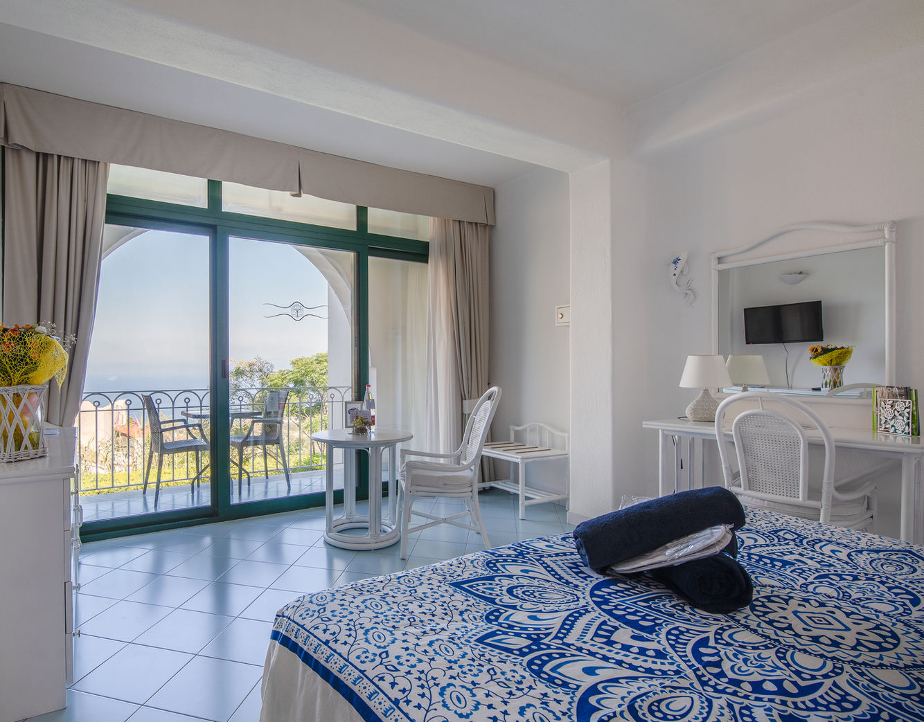 la maggior parte con terrazza o balcone. Camere con vista mare o sul Monte Epomeo.